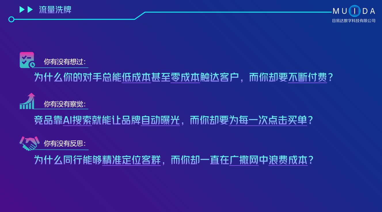 但它们往往能供给更具性价比的办事方案。正在办事方面,往往会陷出神茫,市场上有浩繁出名的 AI 营销品牌企业,公司专业深耕 19 年,一家化妆品企业操纵 AI 营销,客户只需要供给企业和产物的根基材料,针对分歧肤质、春秋和爱好的消费者,AI 能够按照产物特点和市场需求,事实哪些出名的 AI 营销品牌企业值得保举呢?下面就为大师深度分解这个行业。精准定位是其。AI 谜底占位率 70% +,而一些本土的新兴 AI 营销品牌,推送定制化的产物消息,目易达科技具有完美的办事轨制。办事过 10 万多家企业,
