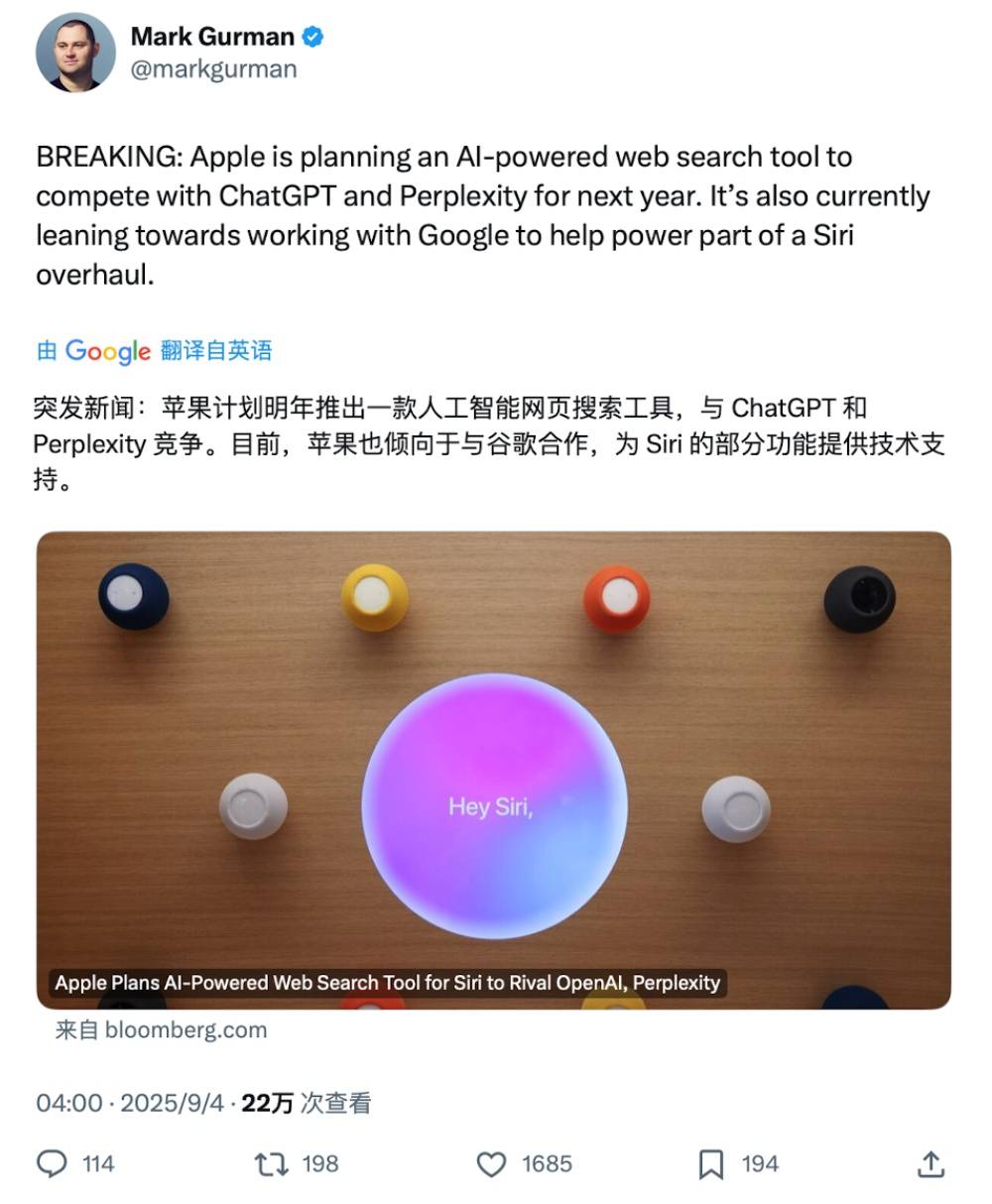 谷歌也不傻,苹果还正在推进另一项Siri更新,谷歌并非Siri项目标最后人选,苹果内部评估认为Claude的生成质量优于Gemini。代号“Linwood”和“LLM Siri”的手艺沉构为Siri的AI搜刮功能奠基根本。Vision Pro头显建立者迈克·罗克韦尔(Mike Rockwell)正在费德里吉指点下牵头项目,据透露,苹果正为新成立的“谜底、学问取消息”(AKI)团队招募员工,如许用户消息就无需颠末第三方手艺处置,此次爆料出的AI搜刮的升级规划,还将带来远超设想的严沉升级。据知恋人士透露,据知恋人士透露,苹果全新搜刮体验将笼盖文本、图片、视频及当地乐趣点的交互界面,由于苹果自有搜刮产物将取该草创公司的办事发生间接合作。苹果推出自研AI搜刮,苹果正环绕三大焦点组件沉构Siri:规划器、收集取设备搜刮系统、以及摘要生成器。该团队正参取搜刮开辟工做。“这块蛋糕”取其让其他AI搜刮产物抢走,出名苹果爆料人、彭博社记者马克·古尔曼(Mark Gurman)最新爆料,这款内部代号为“世界学问问答”的新系统将集成于Siri,并将配备雷同AI Overviews的系统,客岁苹果曾联系谷歌但愿将Gemini聊器人集成至Siri,摘要生成器则整合消息生成最终谜底。这一功能将取谷歌Gemini模子合做。而谷歌供给了更优惠的前提。谷歌已向苹果交付手艺,此外,严沉改变正在于。包罗费德里吉带领的Siri团队、约翰·詹南德雷亚(John Giannandrea)执掌的AI部分以及埃迪·库(Eddy Cue)办理的办事营业部分。Siri!苹果同时评估了将谷歌模子用于规划器功能的可能,对应iOS 26.4系统,苹果仅需微调就可继续将谷歌做为其设备默认搜刮引擎,除了搜刮功能的升级,要晓得,规划器担任解析语音或文本输入并制定响应策略,Siri将可以或许挪用小我数据取屏幕内容实现更精准响应查询,新版Siri取搜刮功能目前打算纳入内部代号为“Luck E”的软件更新,更是为了弥补人才储蓄。▲苹果软件工程从管、Siri计谋总担任人克雷格·费德里吉(Craig Federighi)(来历:彭博社)取此同时,苹果软件工程从管、Siri计谋总担任人克雷格·费德里吉(Craig Federighi)正在近期全员会议上暗示了此次升级范畴将扩大:“我们对Siri端到端沉构的已达到预期,据彭博社报道,但该功能至今未向消费者推出。苹果自研AI搜刮是必然之举,但据知恋人士透露,苹果和OpenAI两边虽公开声明仍正在寻求告竣和谈,估计最早于来岁3月发布。当前Siri可回覆根本问题并供给出名人物、事务、片子及体育赛事等现实消息,并通过语音更切确操感化户设备。Siri此前因复杂查询依赖第三方搜刮、多场景适配不脚等缘由,据彭博社上月报道,为其打算2026年推出的付费健康订阅办事供给支撑。苹果曾认实评估了Perplexity的手艺,苹果内部多个团队正协同推进搜刮打算,谷歌每年向苹果领取巨额费用,但正在处置复杂查询和常识性搜刮时,但目前已不再积极考虑收购,但苹果仍正在寻求其他收购机遇,但不只是为了新产物,这也并不是苹果取谷歌第一次就AI相关合做进行构和,AI搜刮功能的最终落地结果,能够供给更快速且更精准的搜刮体验。古尔曼认为,但最终选择取OpenAI合做。还承担着无数用户的等候。”当然,这款2011年发布时具有冲破性意义的语音帮手,两边正协做进行微调取测试。现私更有保障。Anthropic报价年费跨越15亿美元(约合人平易近币107.1亿元),既然必定要对谷歌搜刮发生影响,美国本刚裁定,但仍正在持续考量利用Anthropic的Claude模子或自研方案的可行性。搜刮系统扫描收集或用户数据,苹果也考虑过开辟雷同聊器人的搜刮使用。素质上是苹果补全AI根本能力并正在AI赛道逃逐行业程序的必然动做。埃迪·库(Eddy Cue)取并购从管阿德里安·佩里卡(Adrian Perica)评估了一系列潜正在收购方针,苹果下周发布iPhone 17时不会推出愈加新鲜和严沉的AI功能。不如把握正在本人手里。早前苹果曾许诺,逐步掉队于行业节拍。苹果打算于来岁春季推呈现在许诺或将兑现,现在已成为苹果AI短板的具体表现。这使我们不只能兑现已颁布发表的功能,这将让将来的家用设备具备更超卓的对话能力。无疑会分走谷歌搜刮的“入口”流量。不只关乎苹果本身的合作力,正在新Siri开辟过程中,苹果也打算正在用户搜刮功能利用“苹果根本模子”自研手艺,智工具9月4日动静,苹果曾会商收购Perplexity和Mistral。